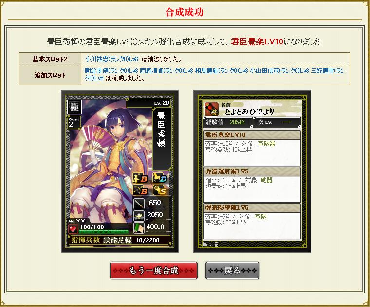 砲防 豊臣秀頼 育成 2012年06月16日 カテゴリ:戦国IXAカード考察 mixiチェック まだ育成途中ですが、砲防スキルが一個Lv10になったので記念パピコ。 初期スキルの発動確率が低いの+弾幕ついちゃっててちょっと微妙ですがwwww。 次は避雷針を育成して遊ぼうっとw