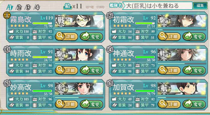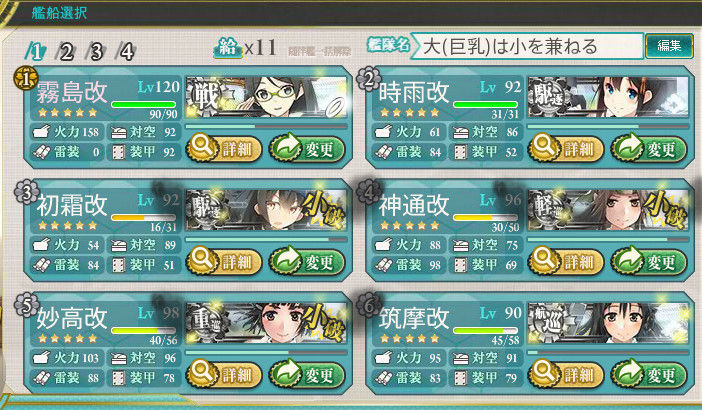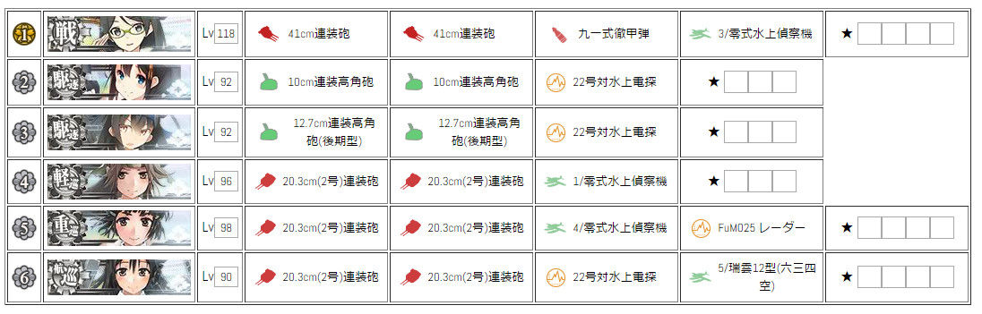 基本的に高速艦統一ルートで行きます。ボス戦で航空優勢がとれないけど火力で殴る方向で