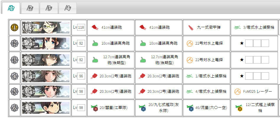支援を主砲3つにしているのは反航戦時の火力キャップを超えるためです。