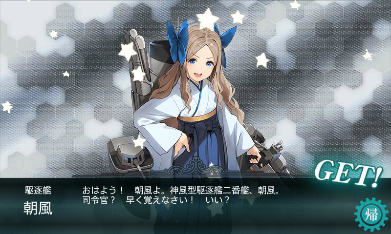 わーい掘れました。50週くらいしたけど。これで我が艦隊は武蔵をお迎えすればコンプリートです。