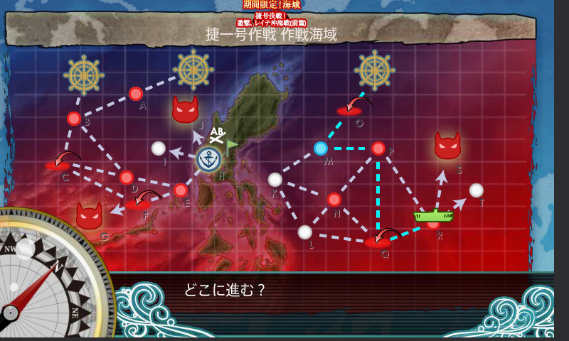 最短ルートに入るには小沢艦隊6隻+空母3隻以下+大型艦1隻以下+索敵かな。