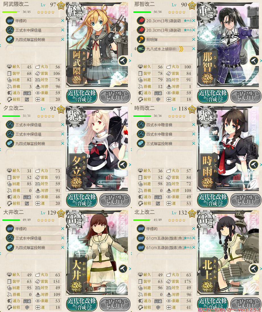 北上さんはダイソンが落とせなかったと器用にカットイン装備にする。