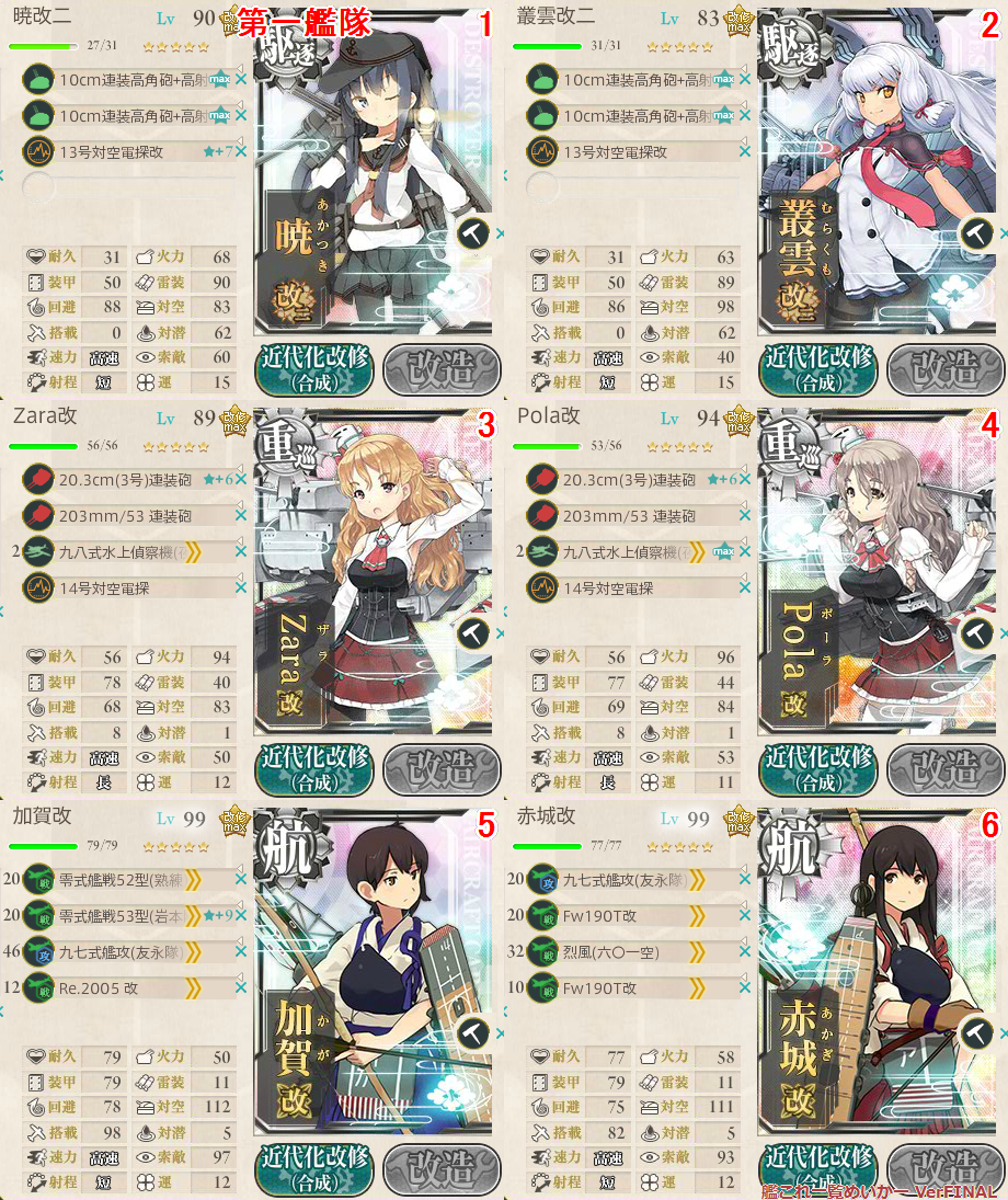 レディとムラクモに恐らくルート固定はないと思うイタリア重巡と赤城加賀2号で行く。