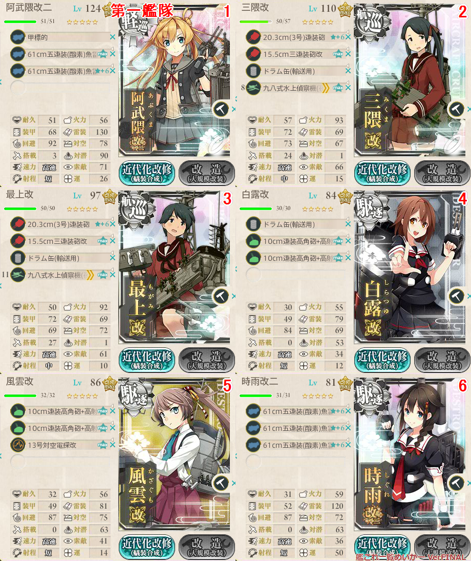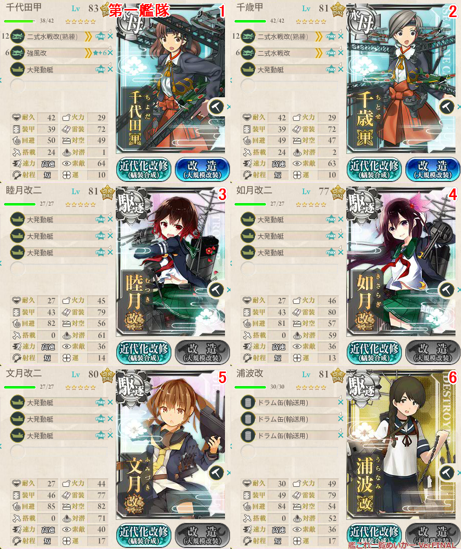 航巡と重巡使うのがちょっと怖かったので、水母でごまかす。戦力になりません。