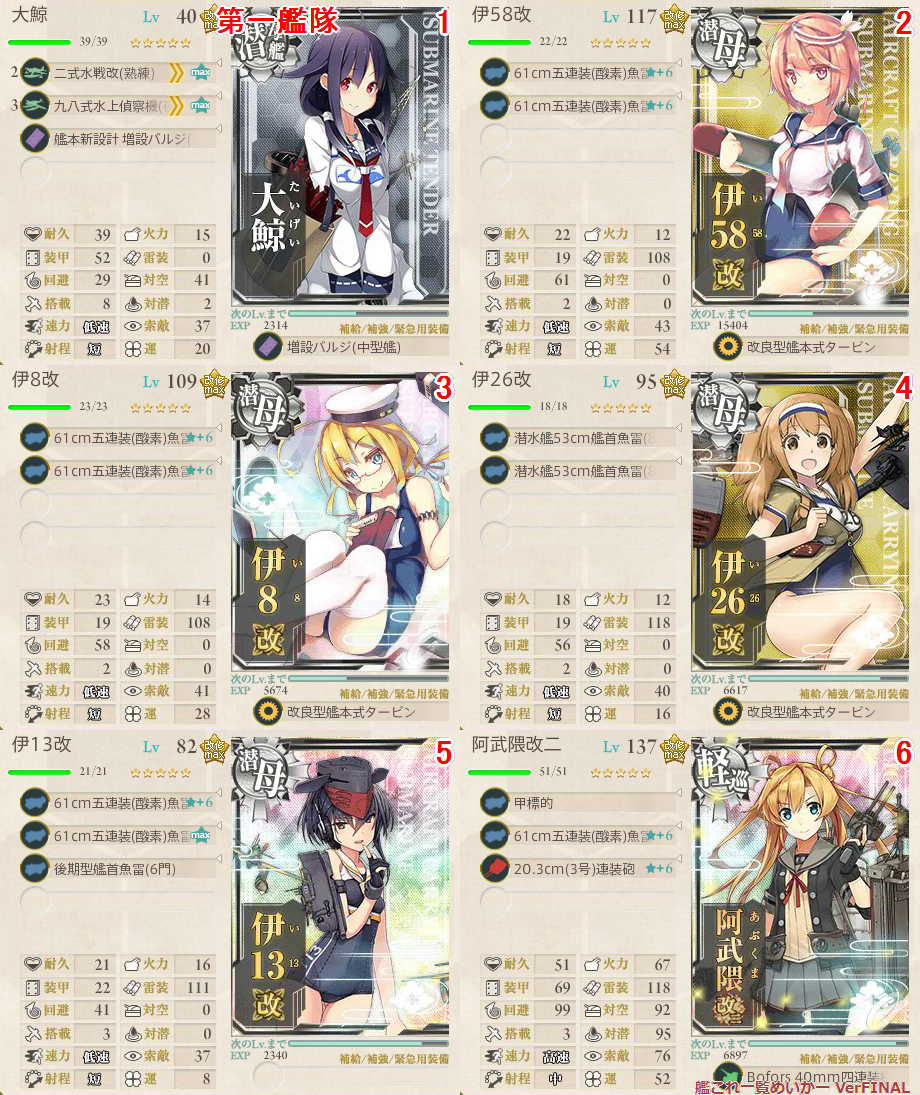 雷装値の高い潜水艦から選ぶ。入渠時間考えたら、潜水空母じゃなくて潜水艦がいいのかな。