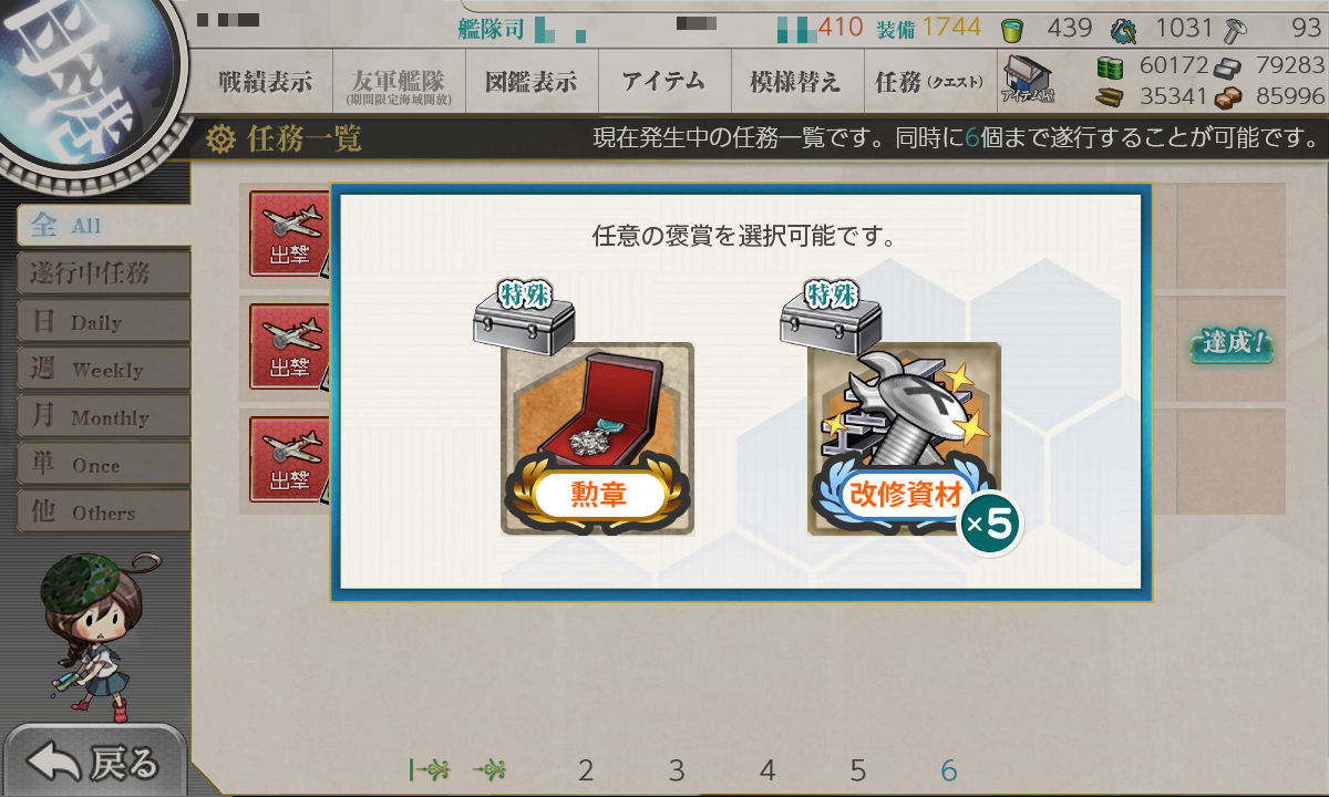 勲章を選んでいます。支援さえさぼらず出せばわりとすぐ終わると思います。