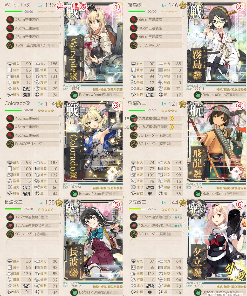 ご指摘されたいのは南方が魚見電で抜けるかだと思いますが、1.2×1なので厳しいと思いますがCI出ないよりはマシと考えていましたが、綾波だけ残って相手が南方だけしか残ってない場合に魚見電でたら悲しいので、機銃とかの方が良いのかなと思います。修正しよう。