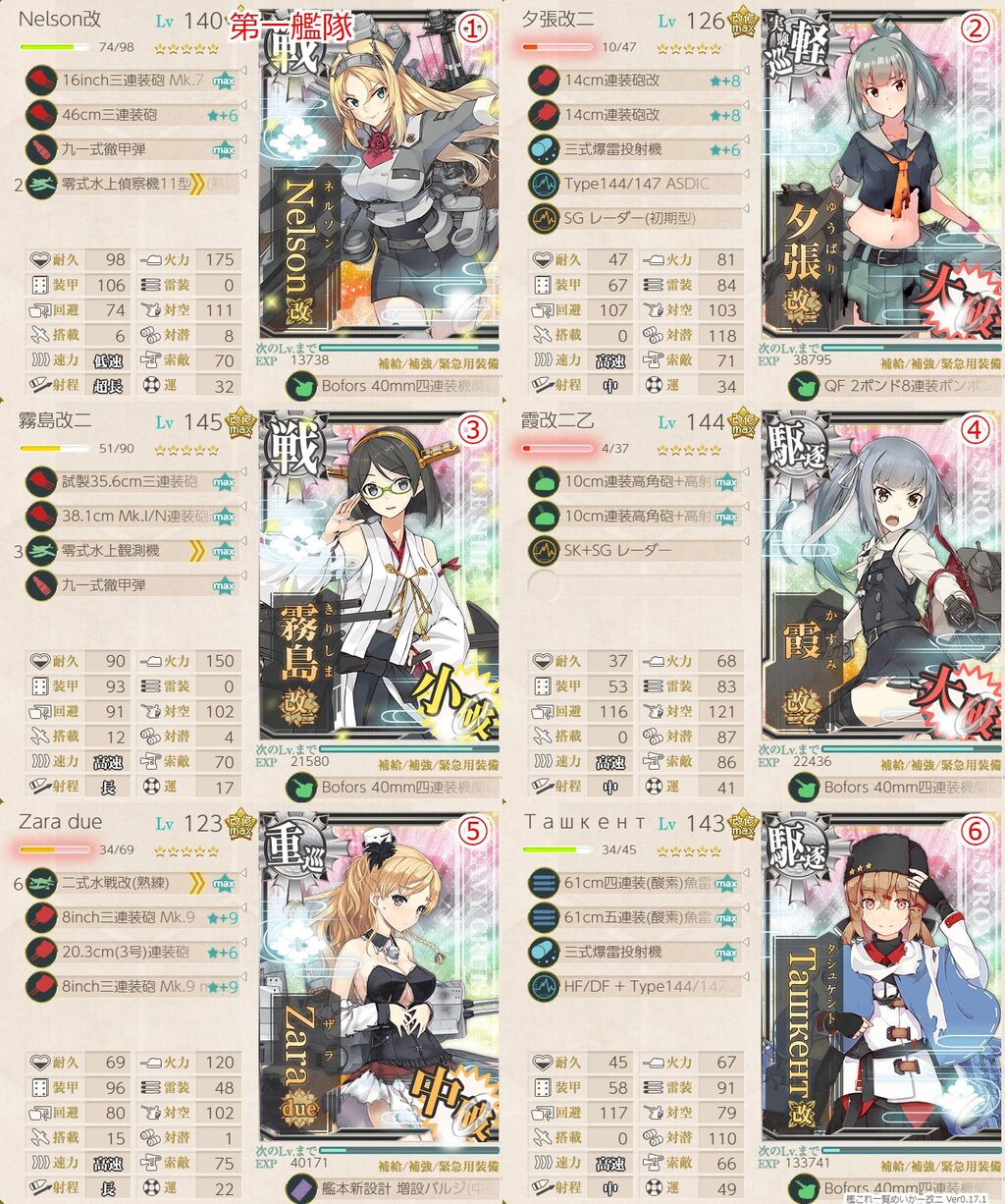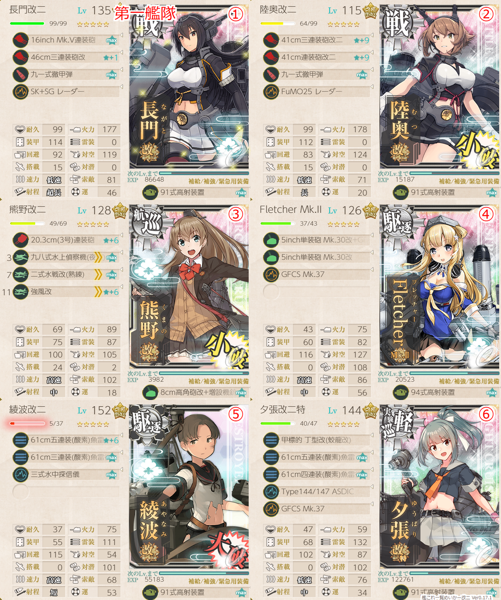 駆逐艦確殺の火力を盛りつつ、エリツへの命中97%で調整。当たらない支援はつらい。