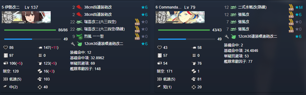 (水上)高速戦艦2軽巡1航巡1軽空母2 軽巡1重巡1駆逐4 O優勢